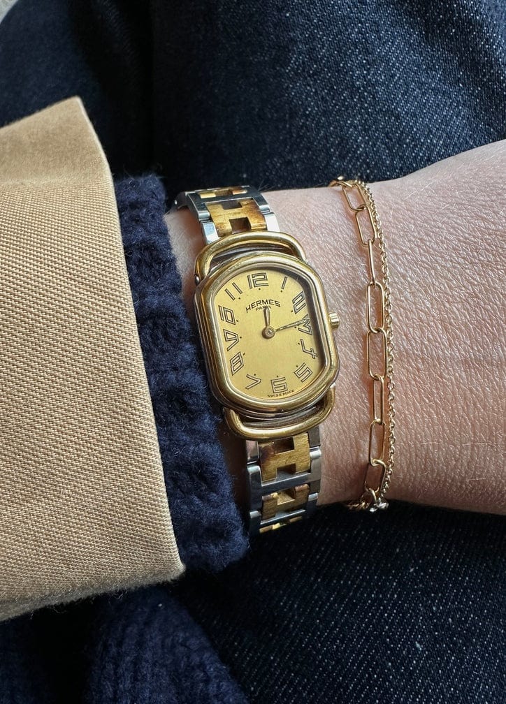 A super chic gold-plated Hermès vintage Rallye watch.