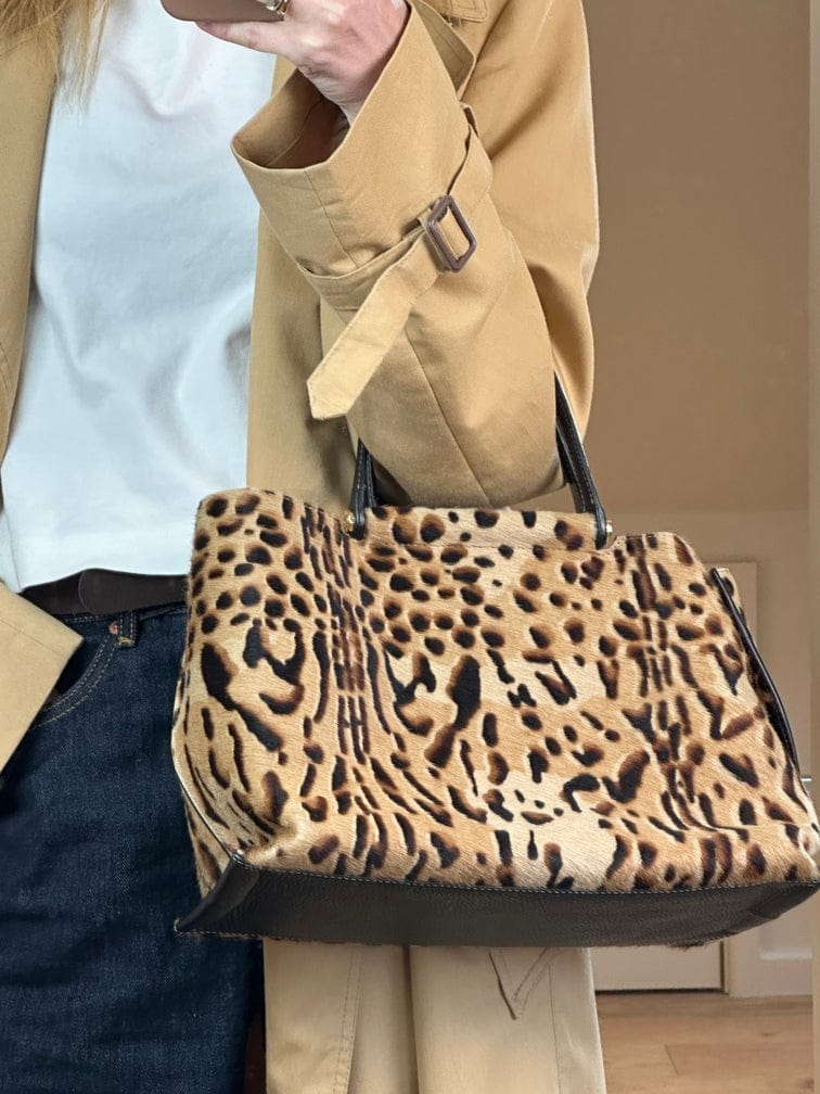 A great tote bag crafted from leopard printed calf hair from the Italian brand Iacucci.