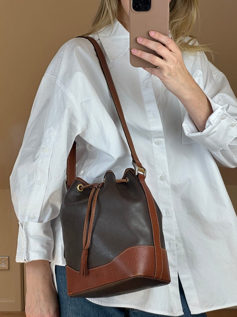 Vintage Loewe Anagram Tan Bucket Bag