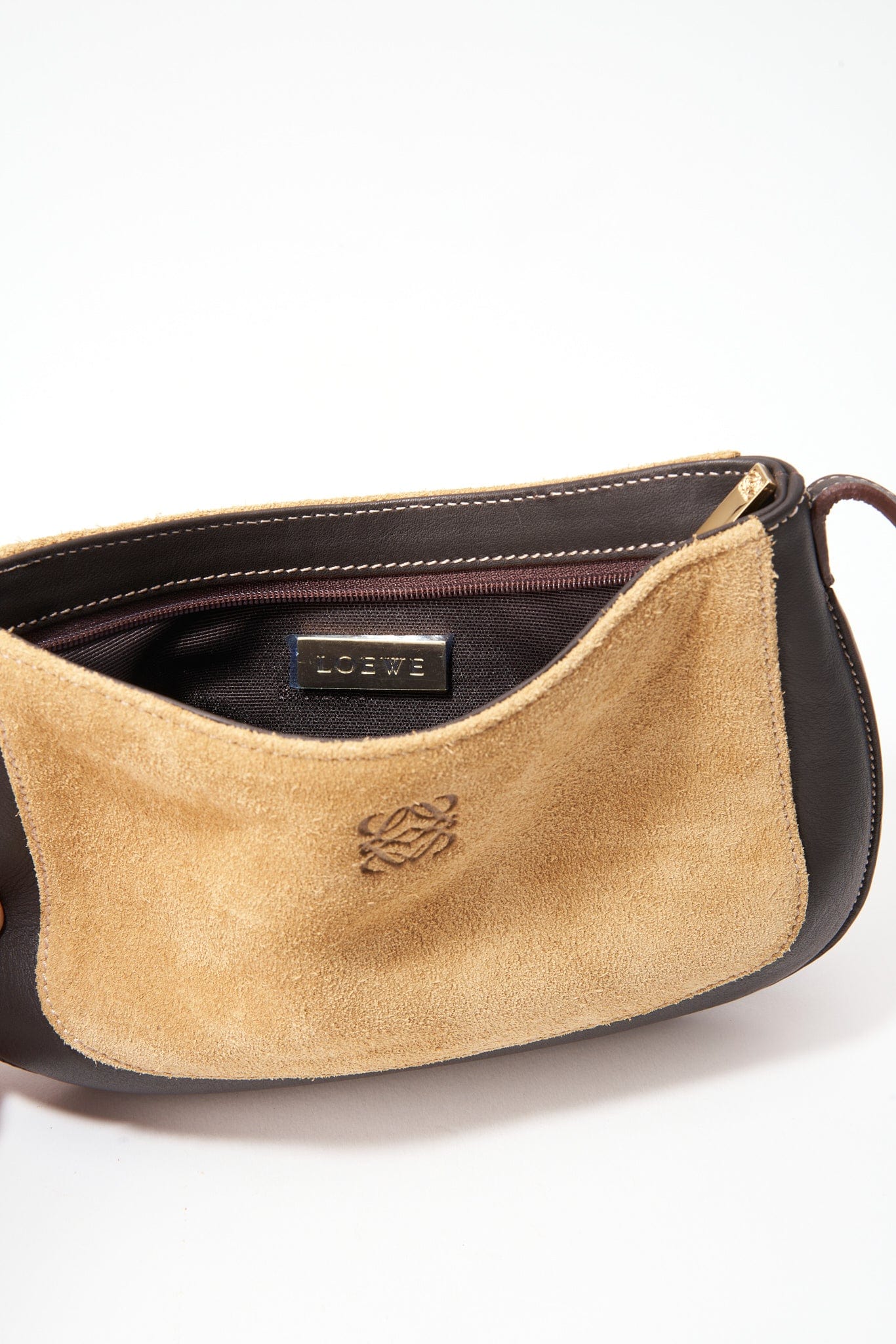 Vintage Loewe Beige Suede Mini Shoulder Bag
