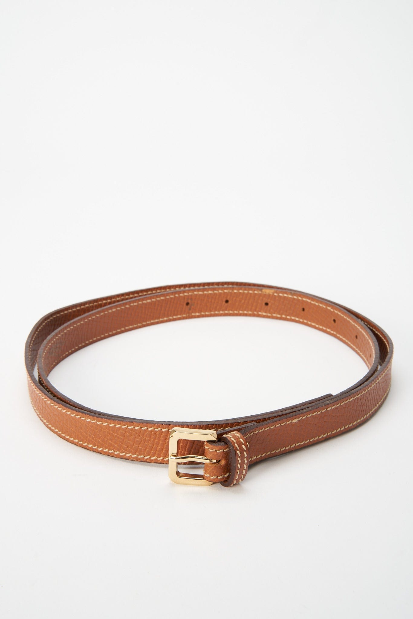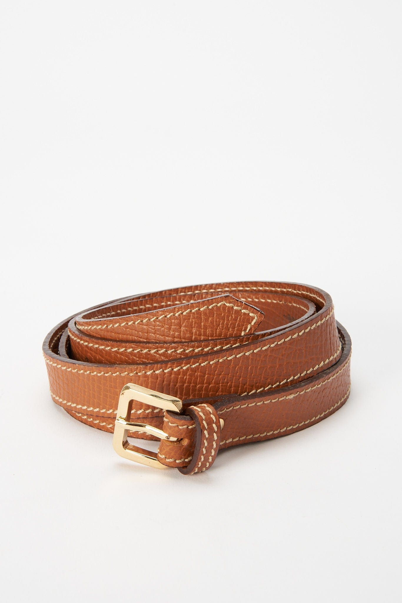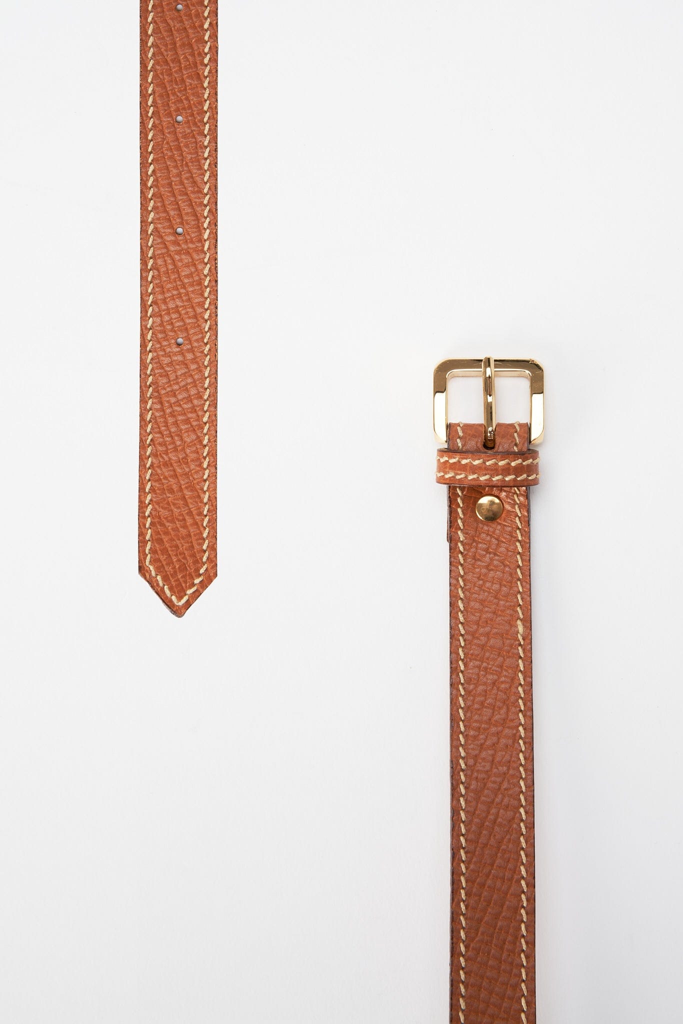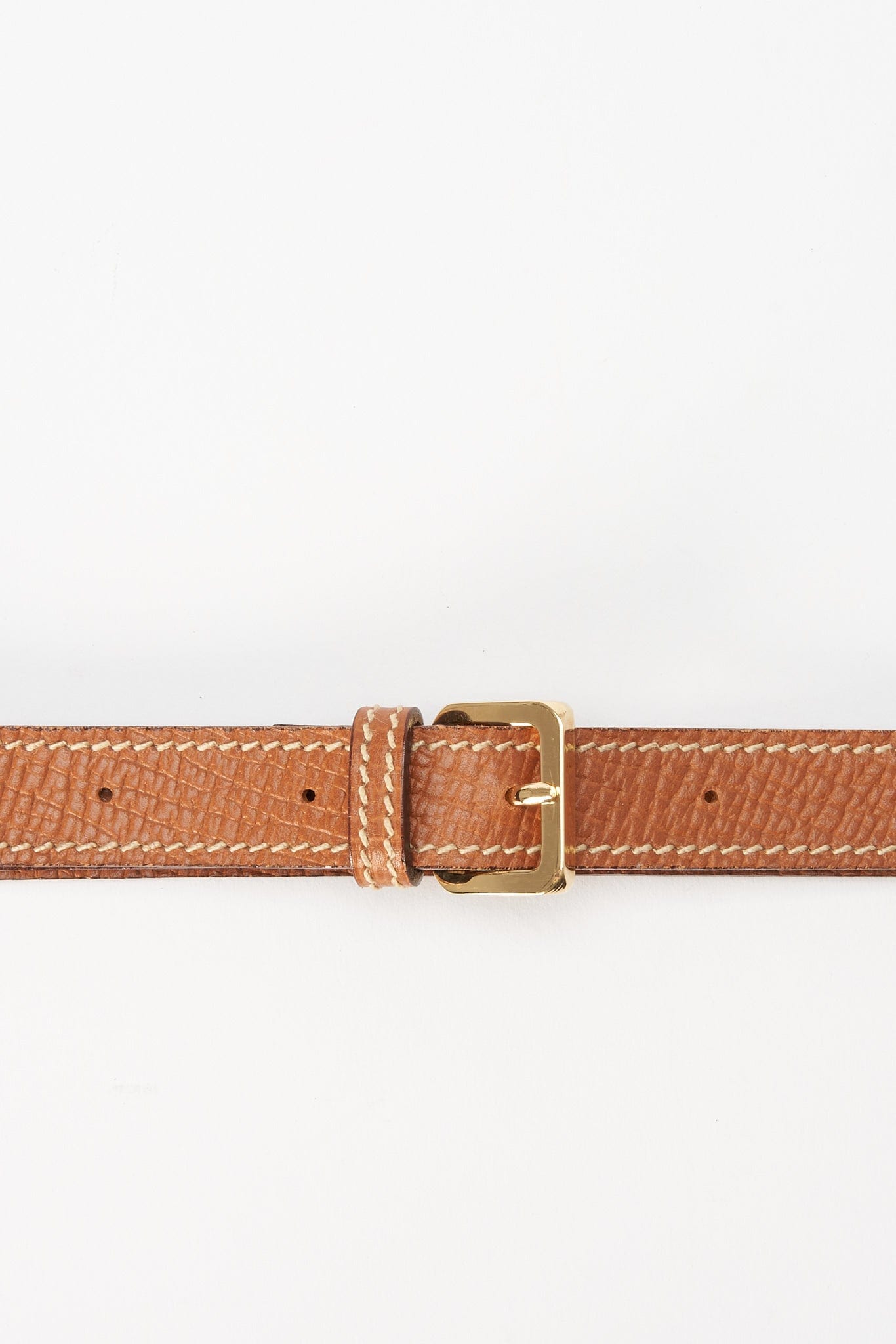 A stunning vintage Loewe belt crafted from a textured tan coloured leather with gold hardware.