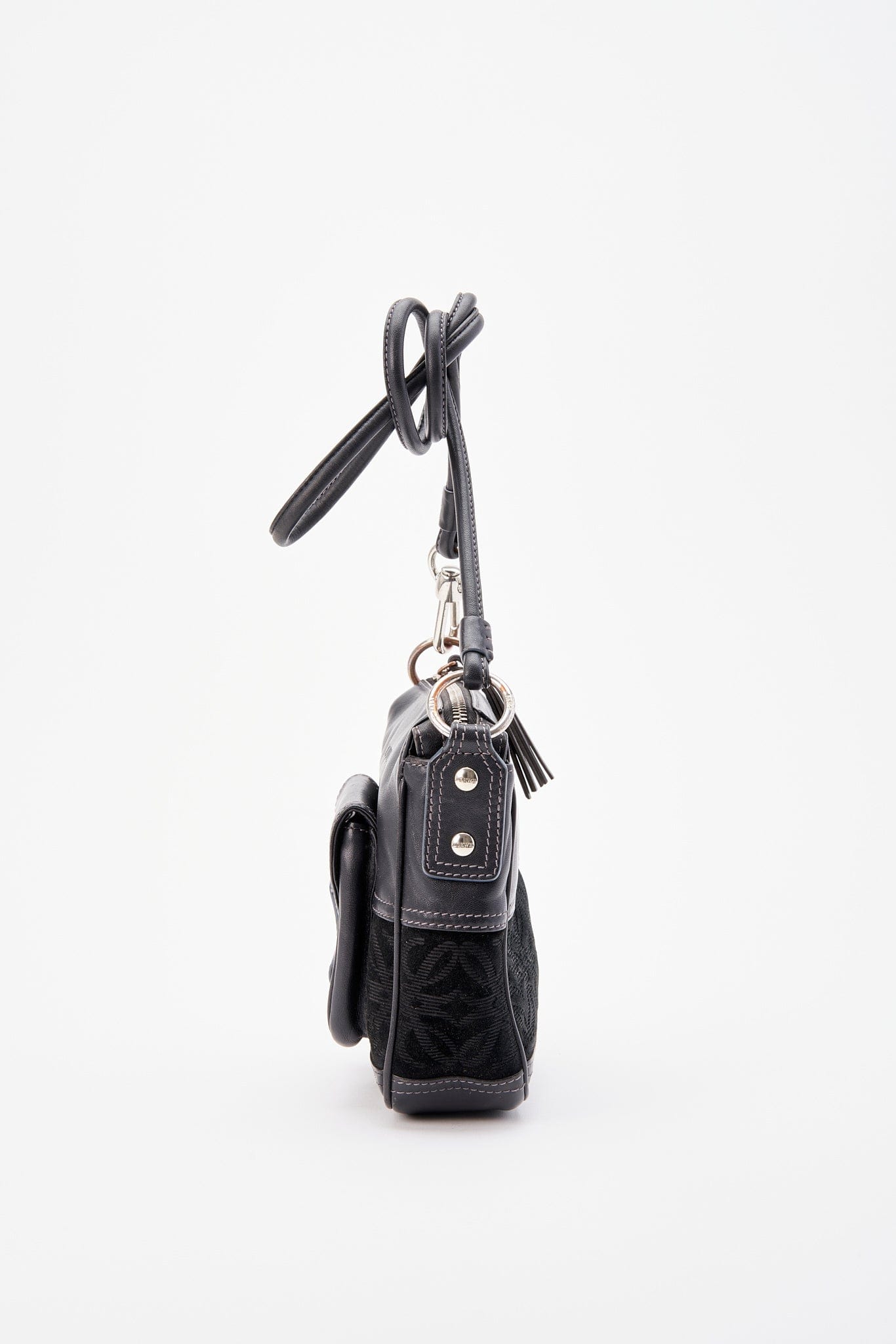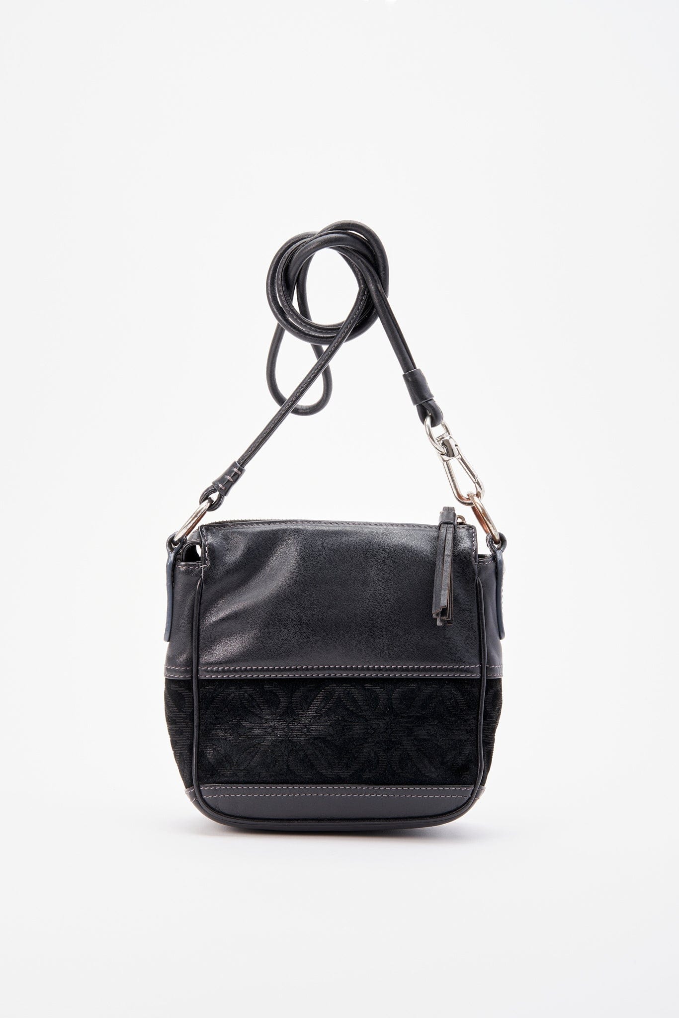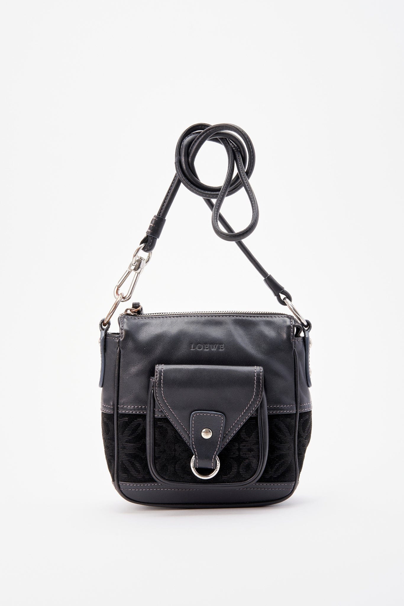 Vintage Loewe Black Crossbody Bag With Silver Hardware