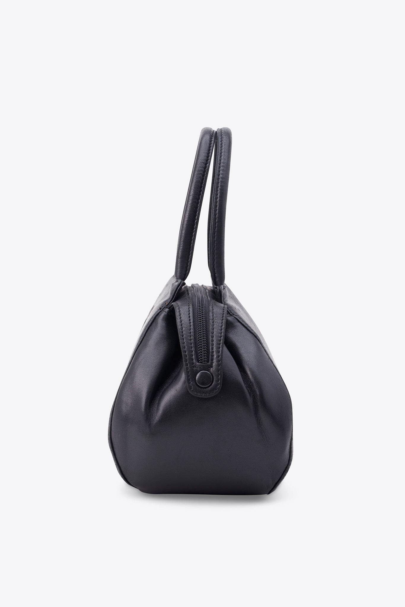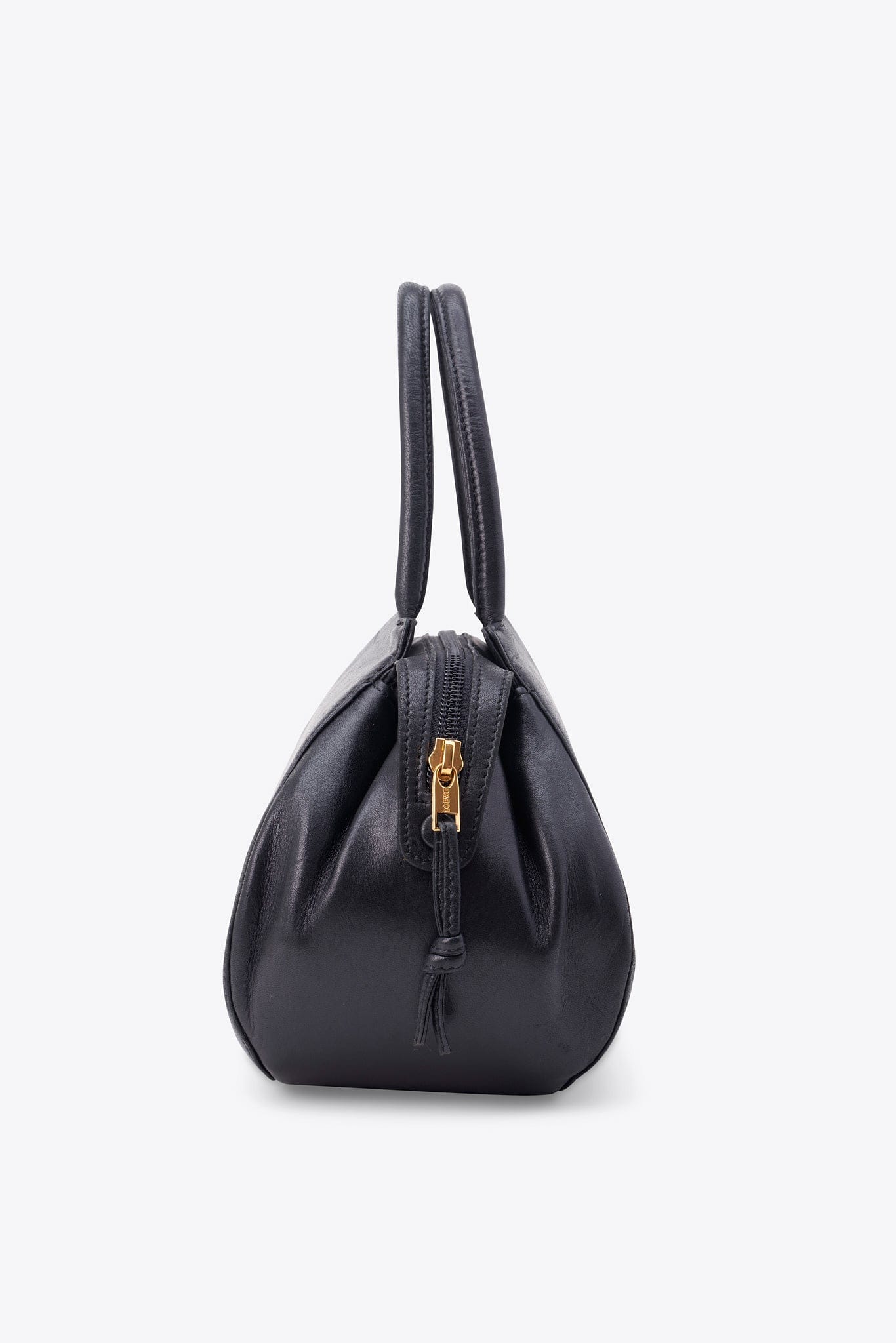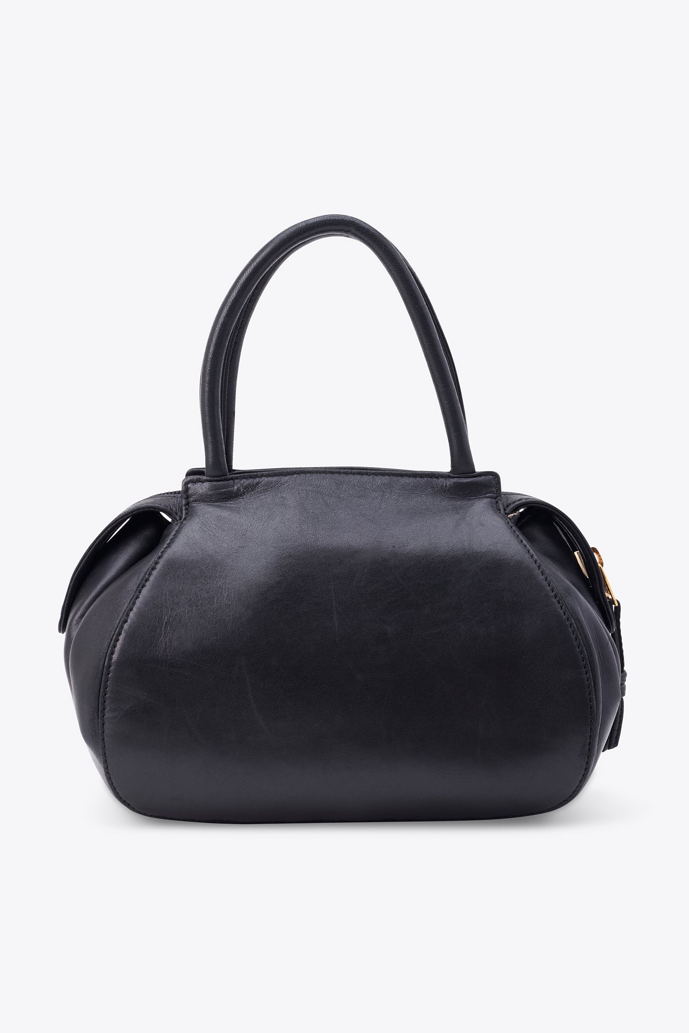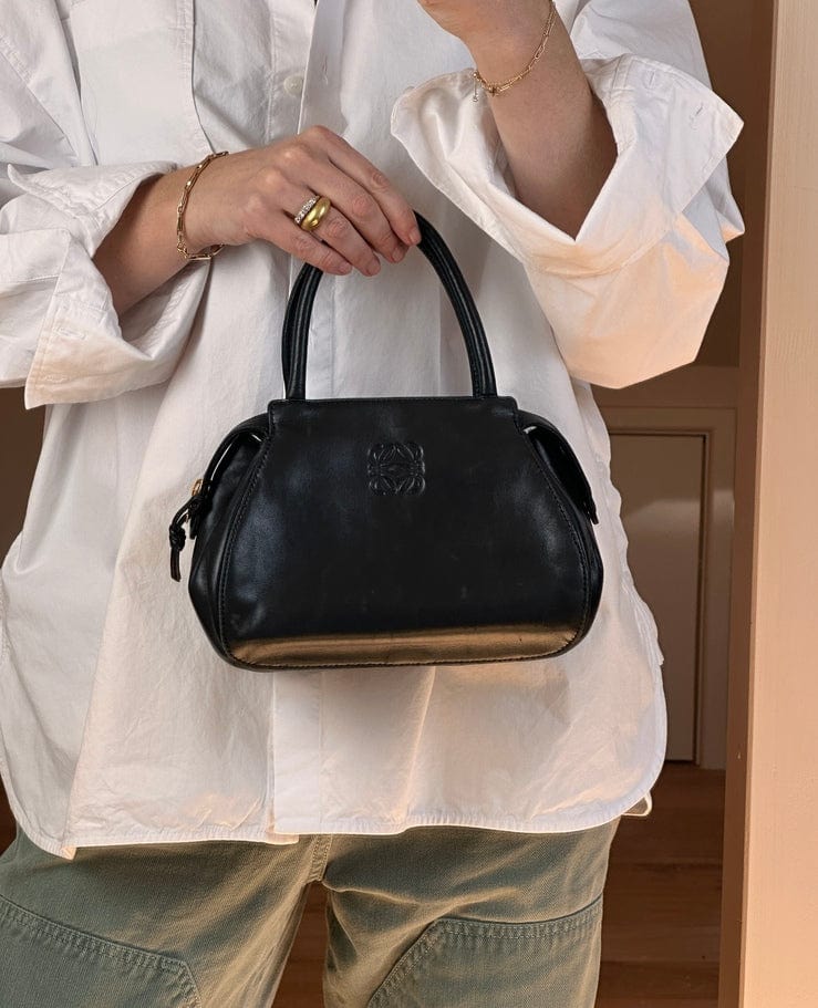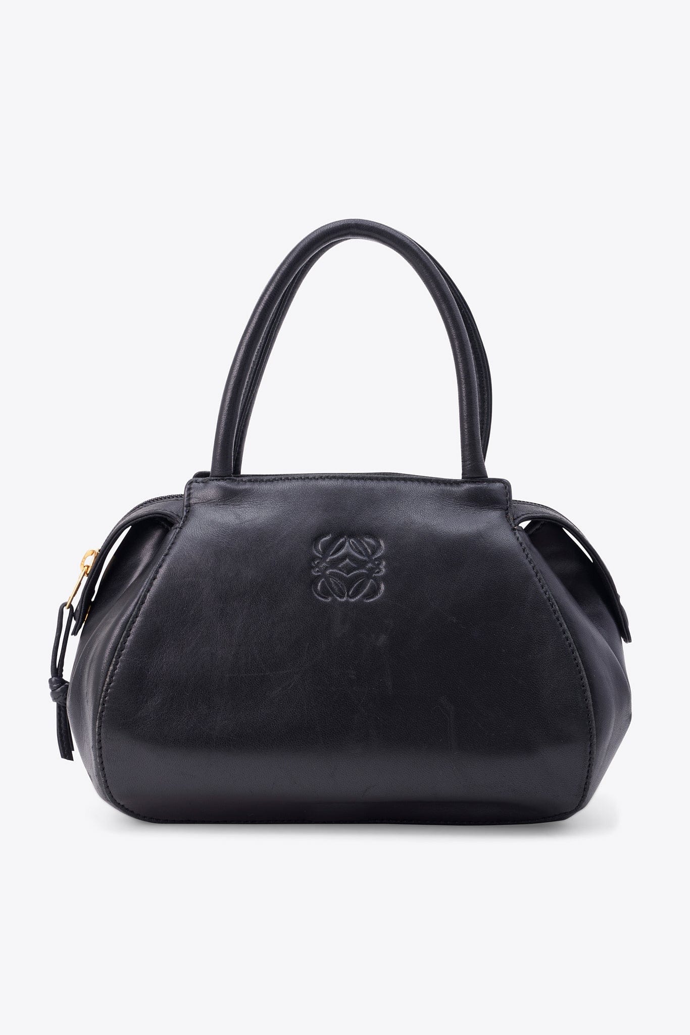 A beautifully minimal vintage piece from Loewe, crafted in soft black leather with gentle structure and the brand’s iconic anagram logo subtly embossed on the front. This compact style is designed with softly curved sides, twin rolled handles and a zip top closure, making it a quietly luxurious everyday companion.