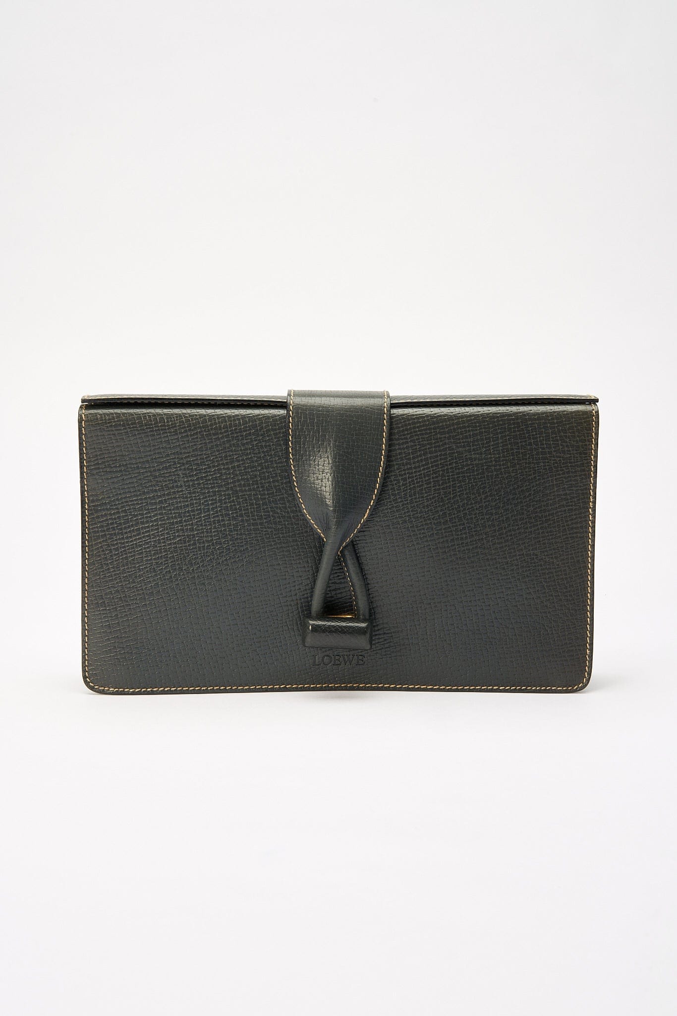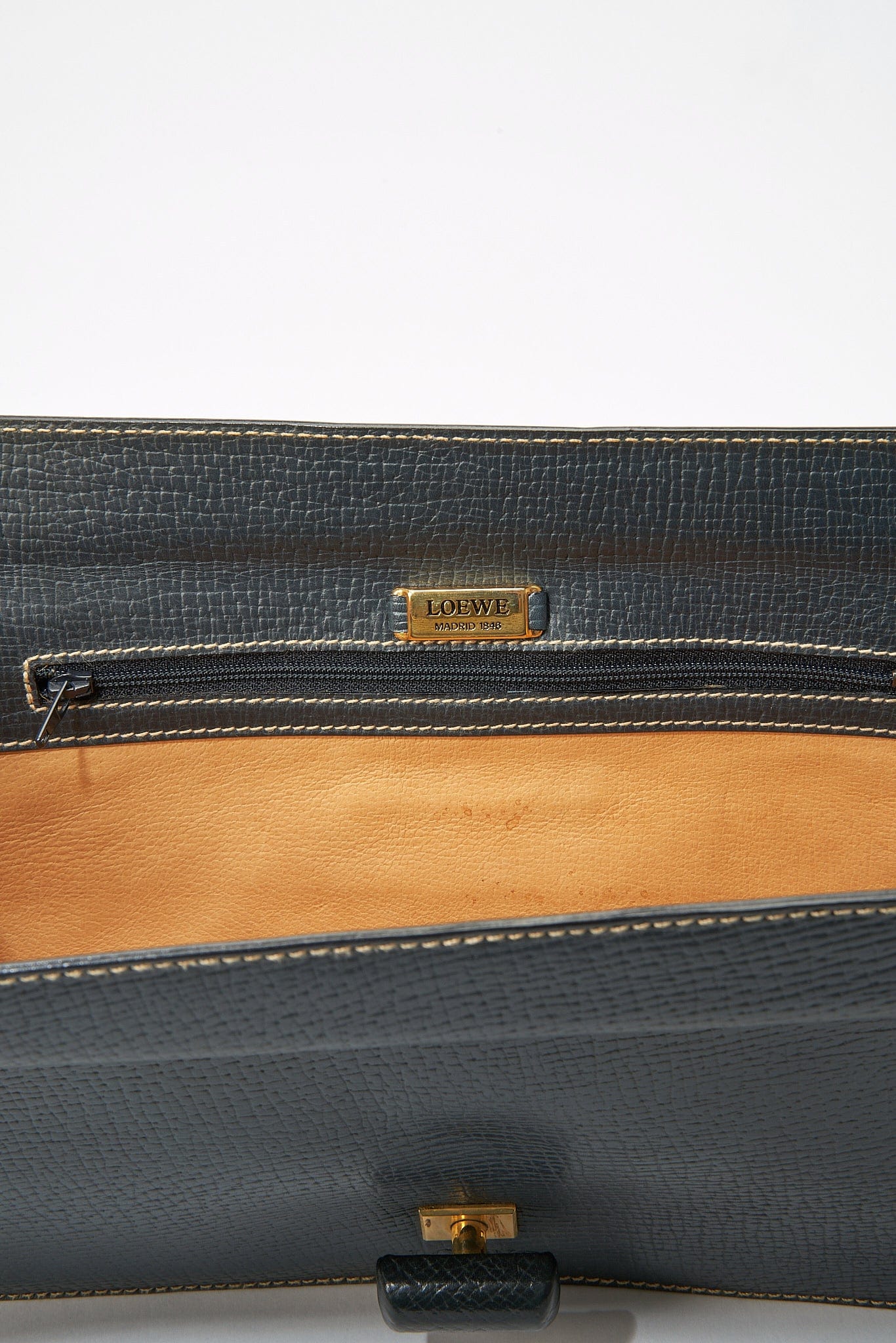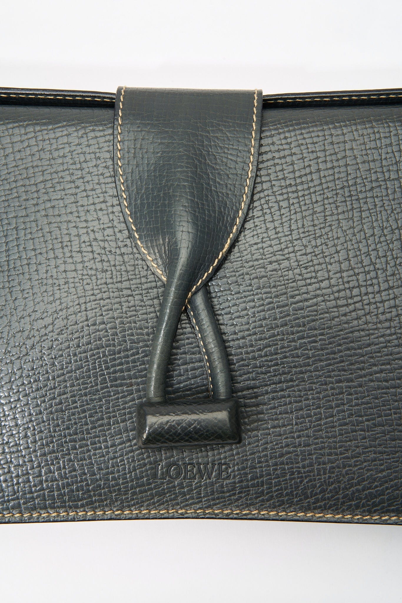 A very special vintage Loewe clutch bag made from a beautiful textured blue/grey leather with a clever twist lock loop closure.
