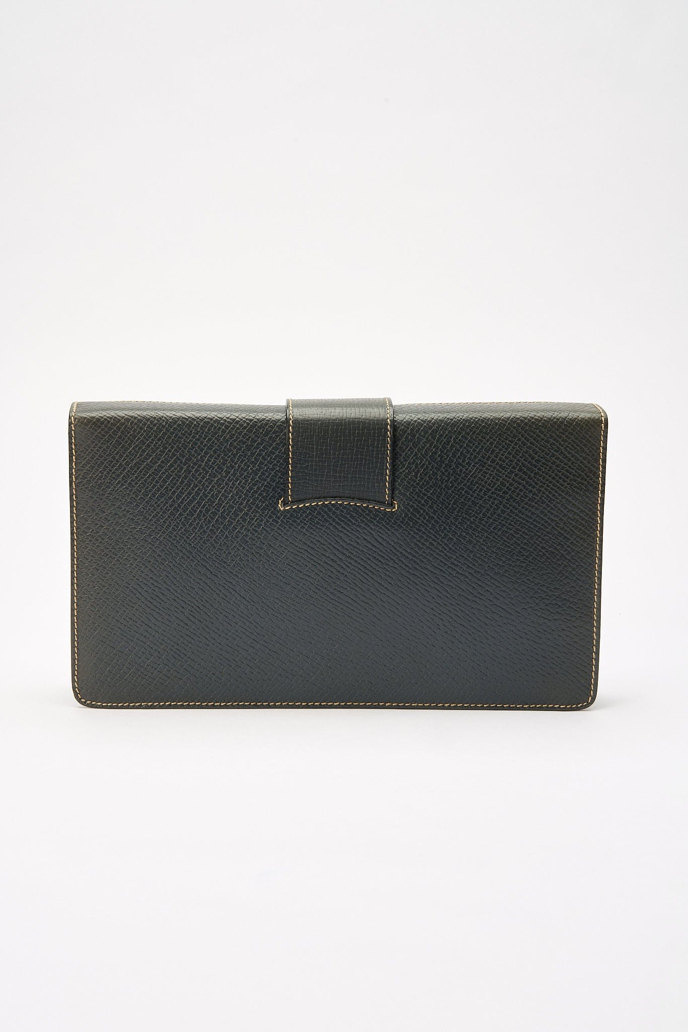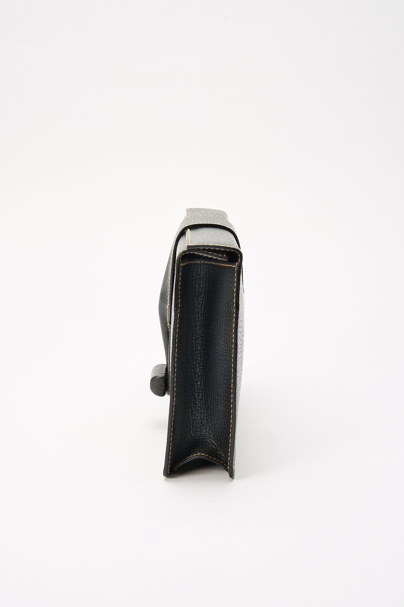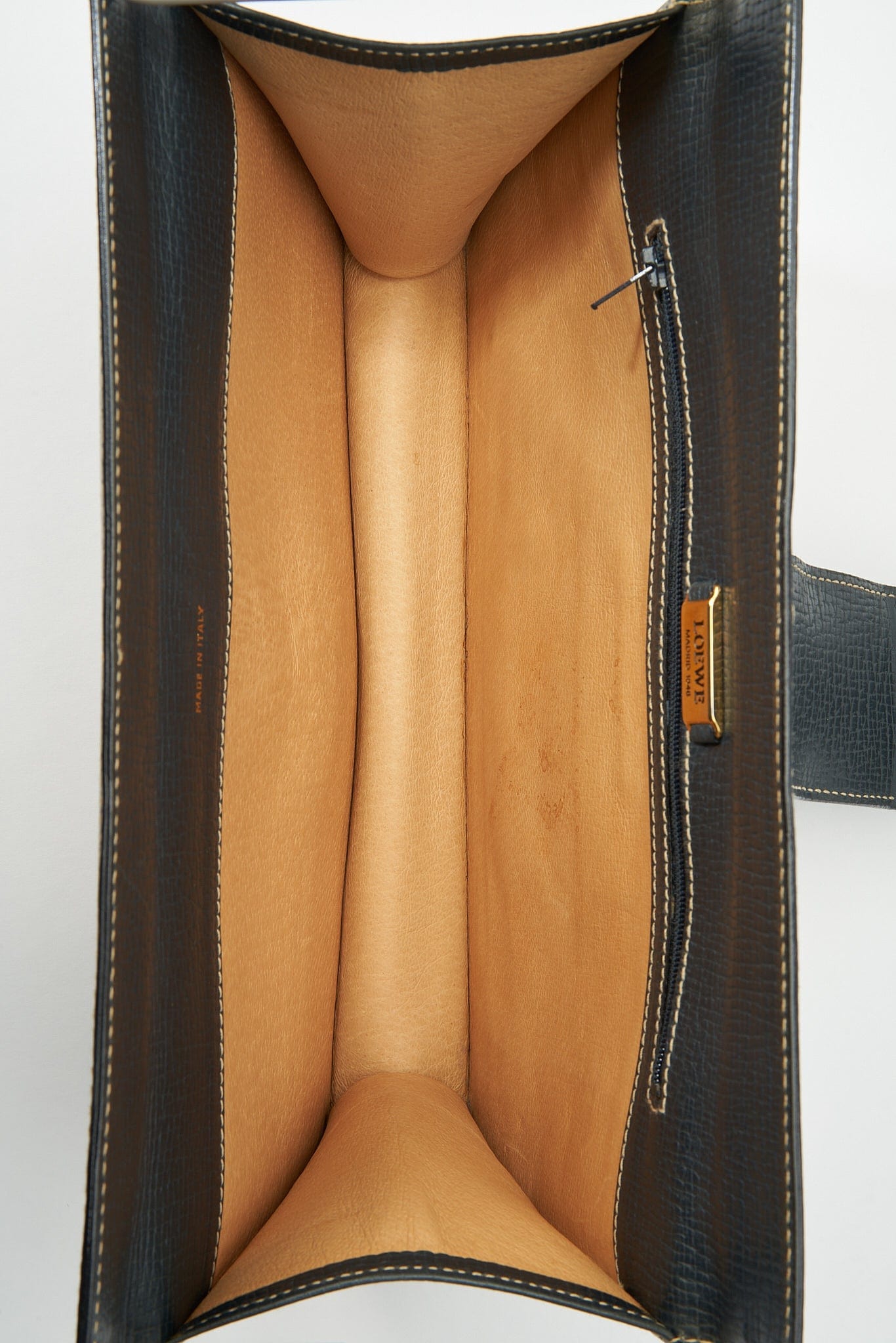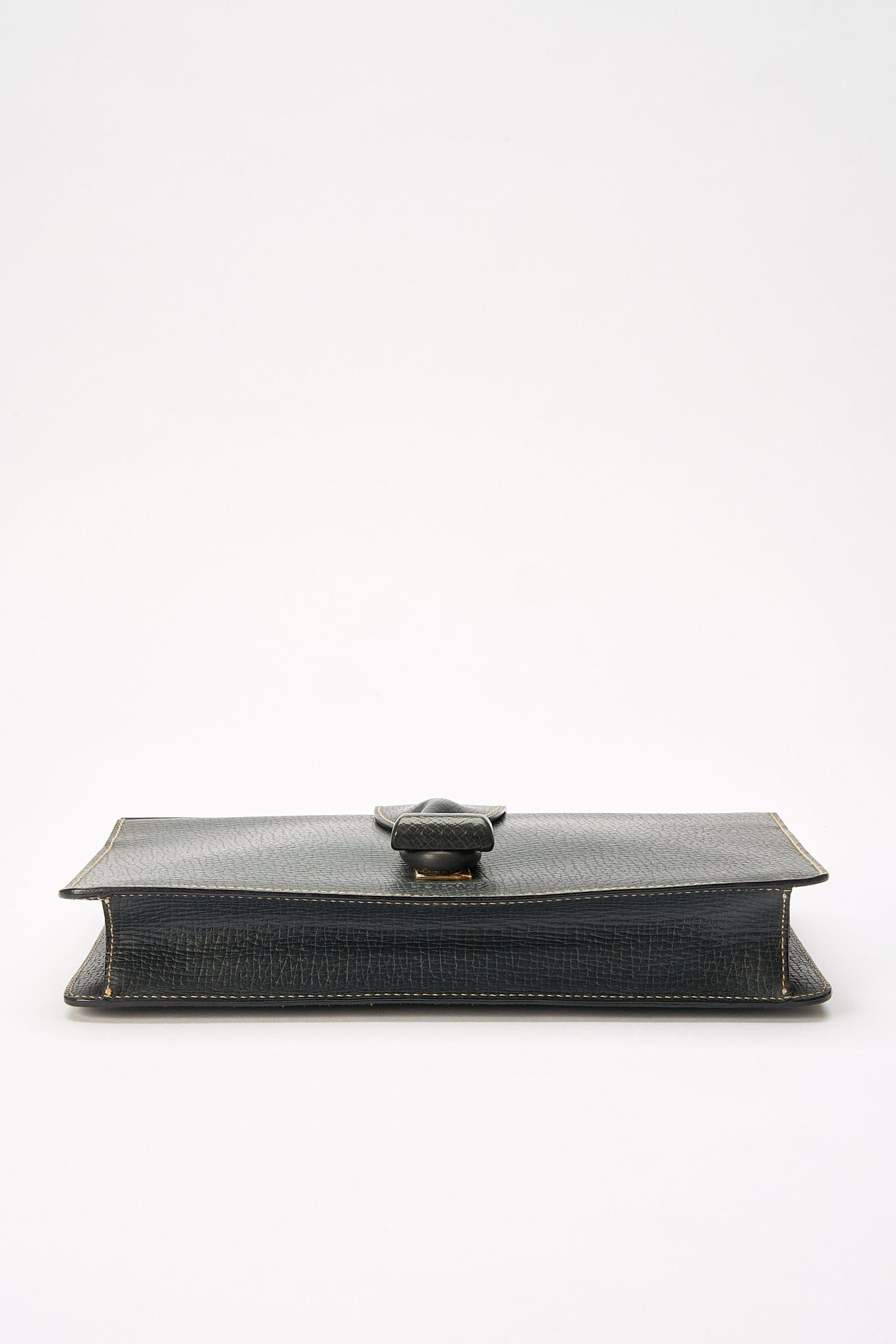 A very special vintage Loewe clutch bag made from a beautiful textured blue/grey leather with a clever twist lock loop closure.