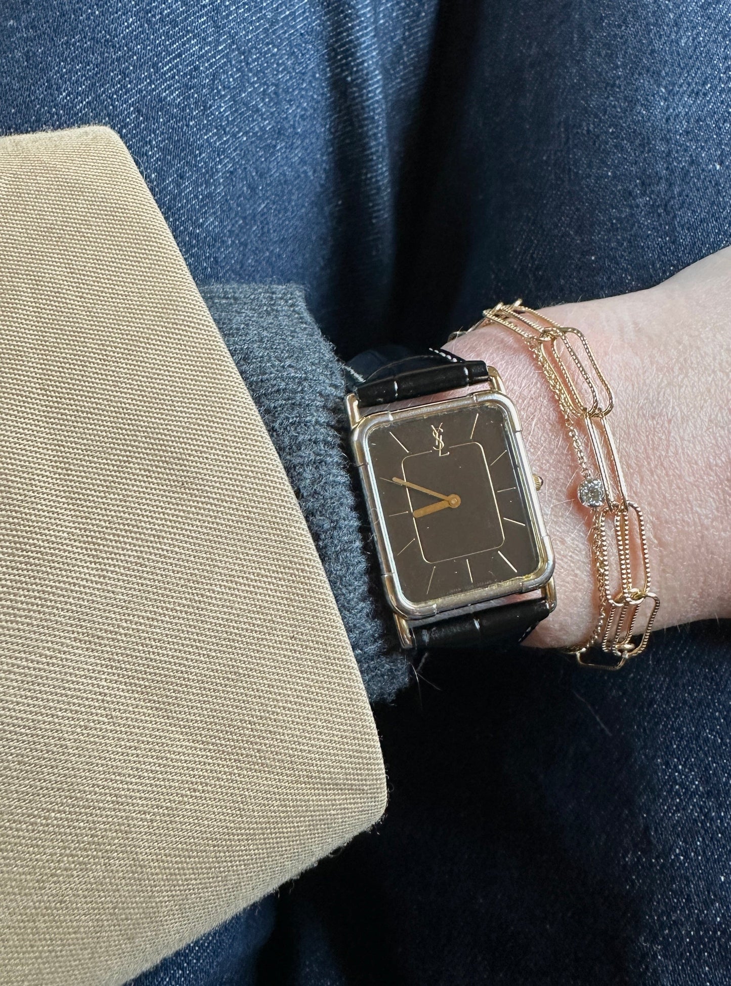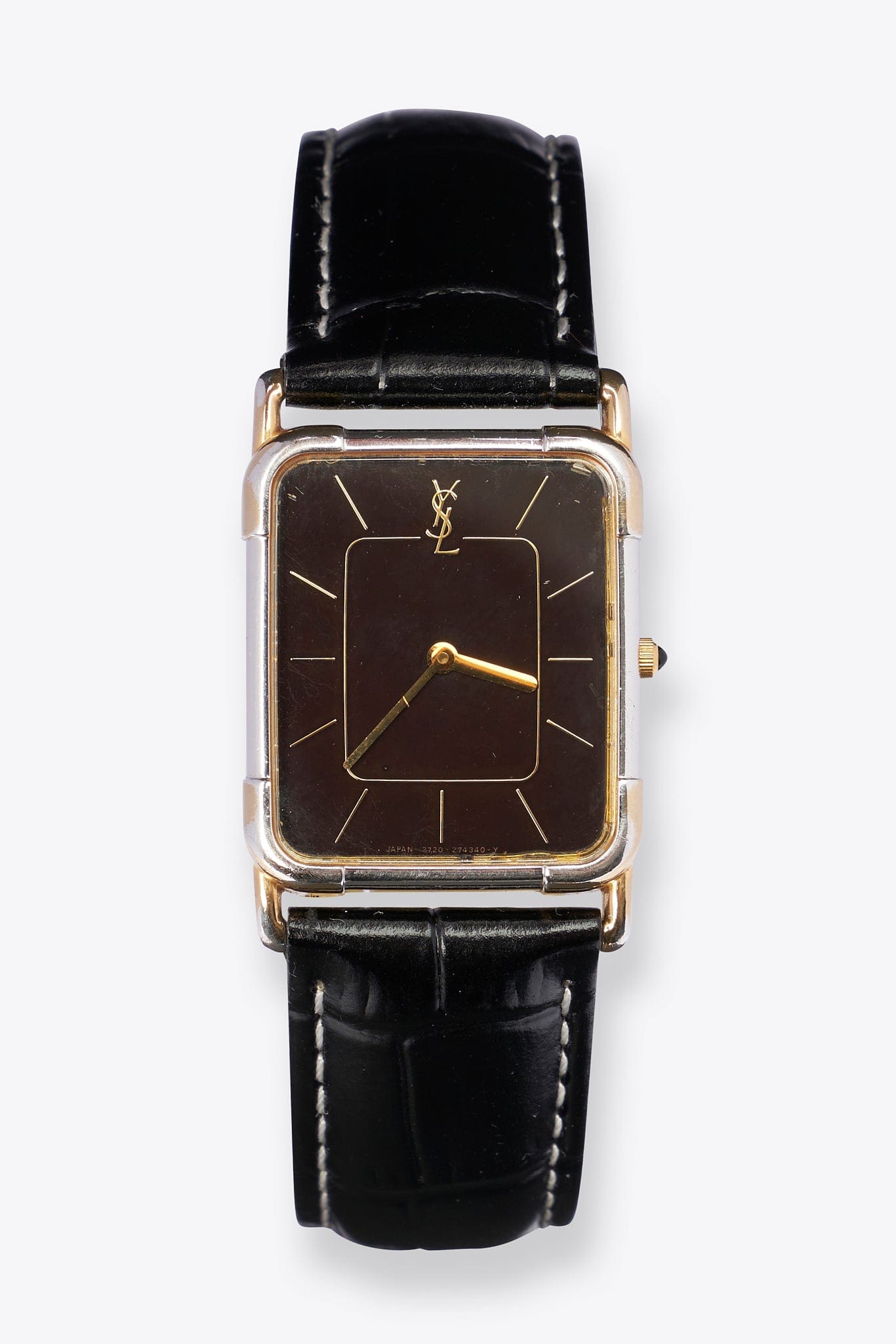 Vintage YSL Gold and Silver Plated Watch with Black Croc Leather Strap