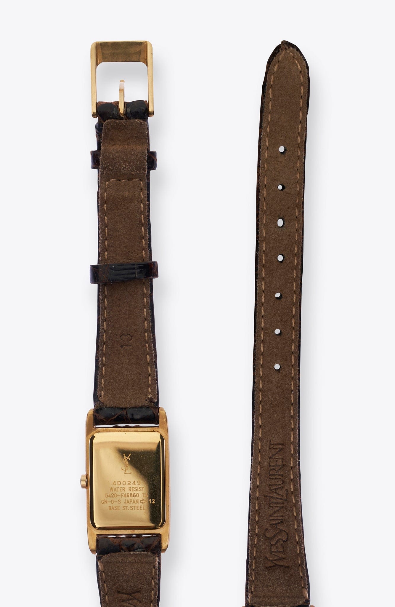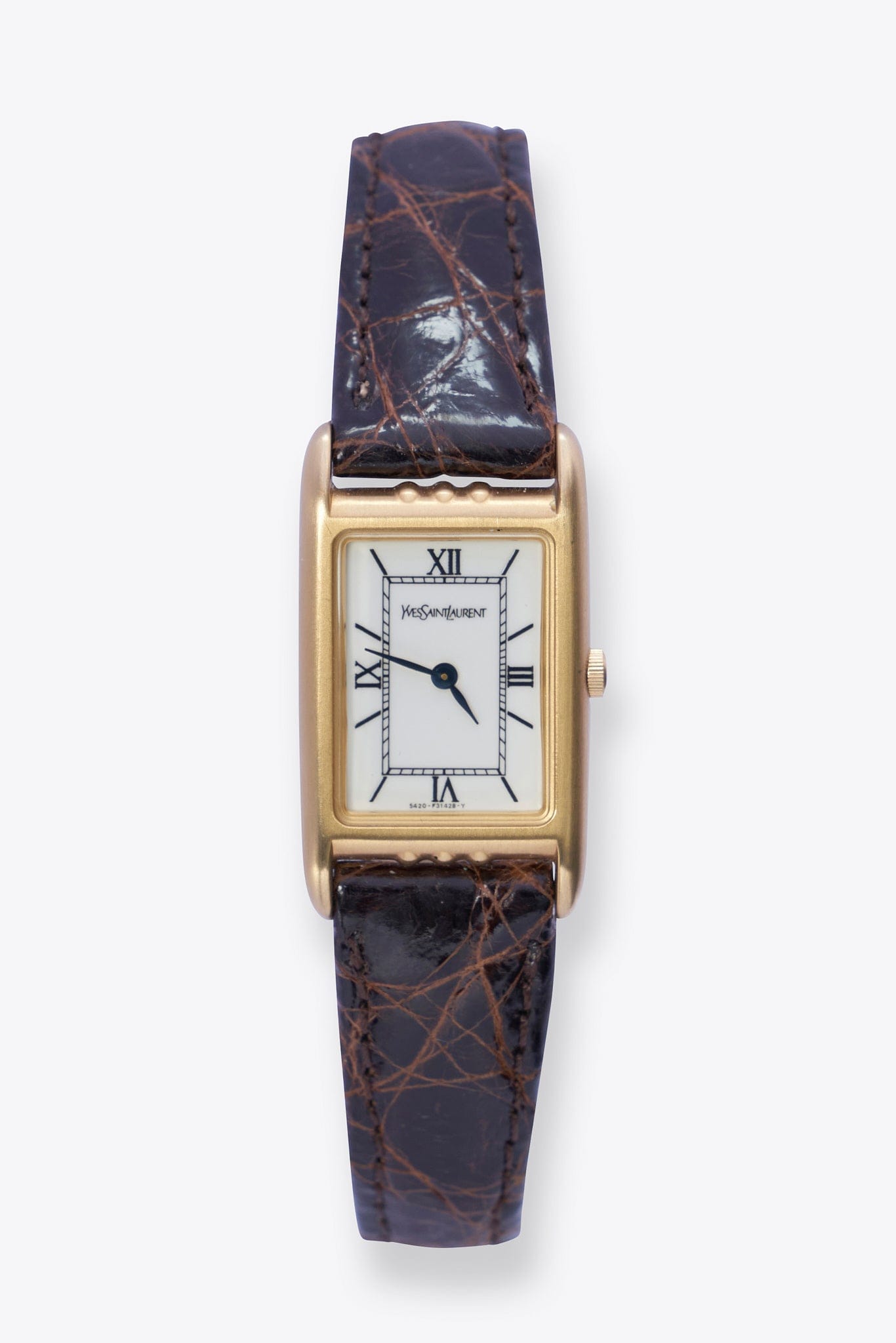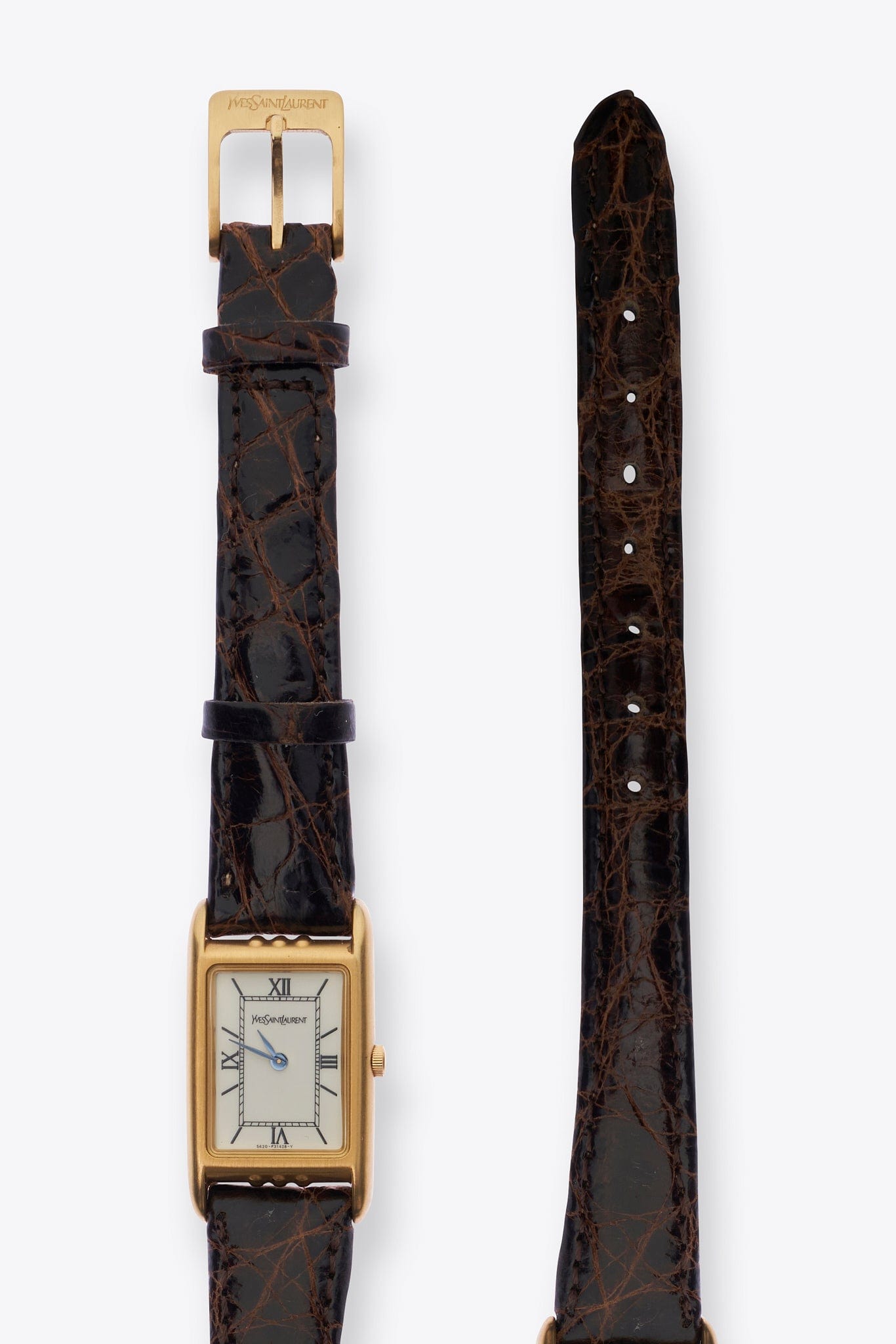 Vintage YSL Gold Plated Watch with Brown Croc Leather Strap