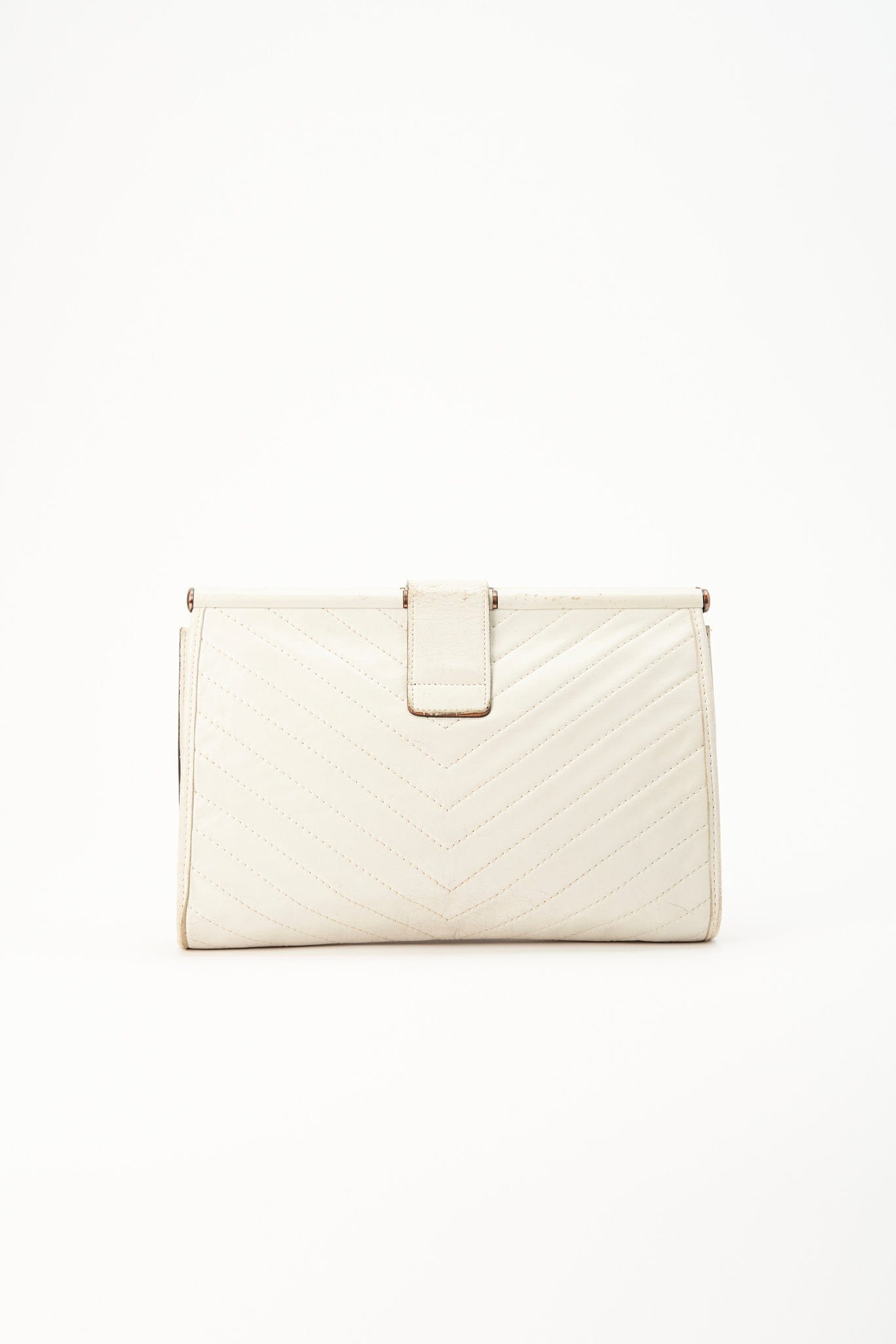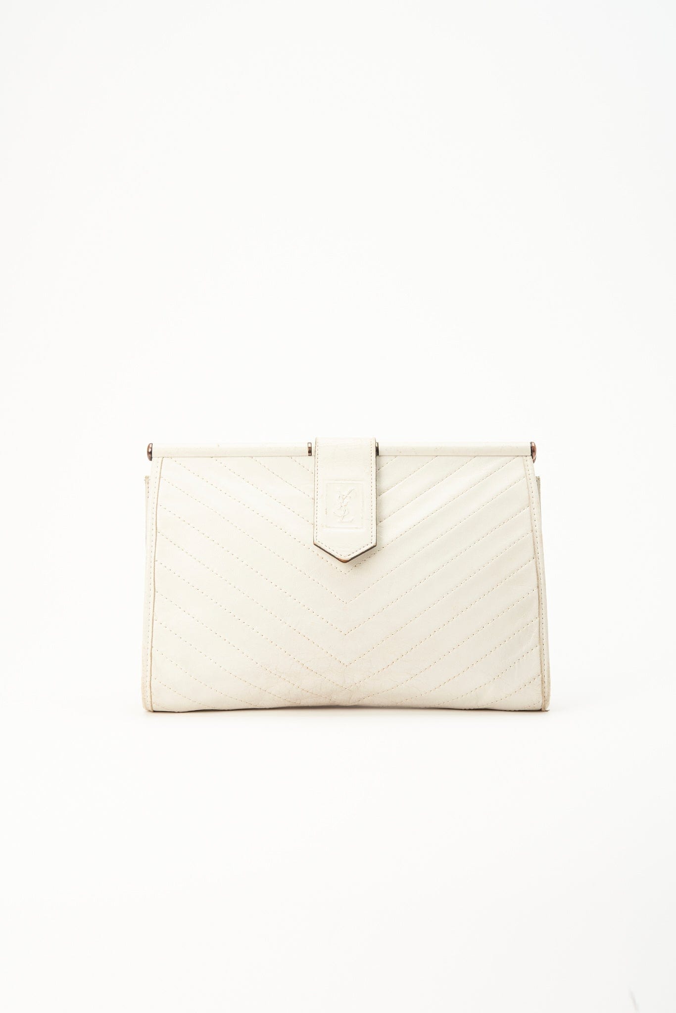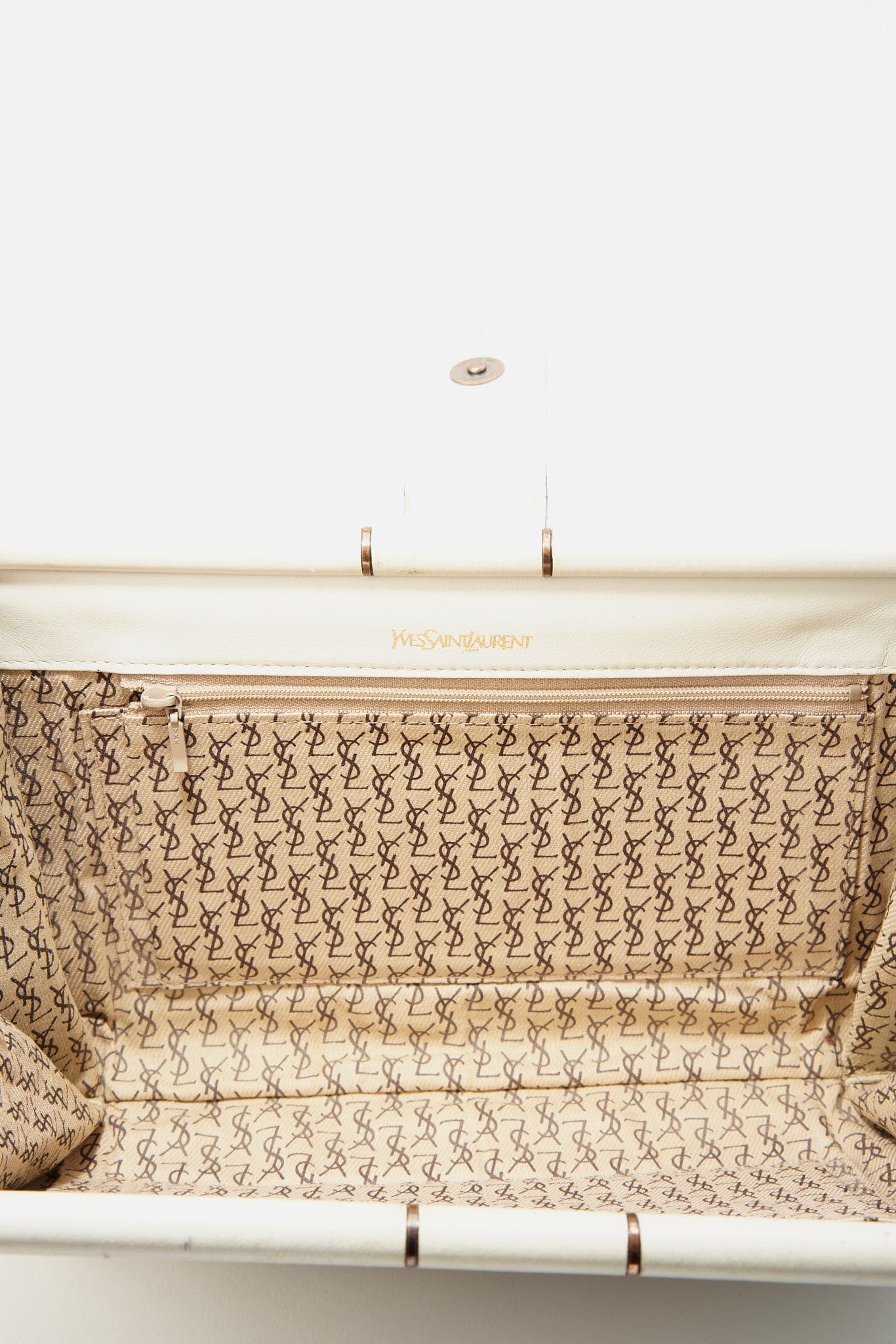 A super chic white leather vintage YSL clutch bag with hard framed closure.