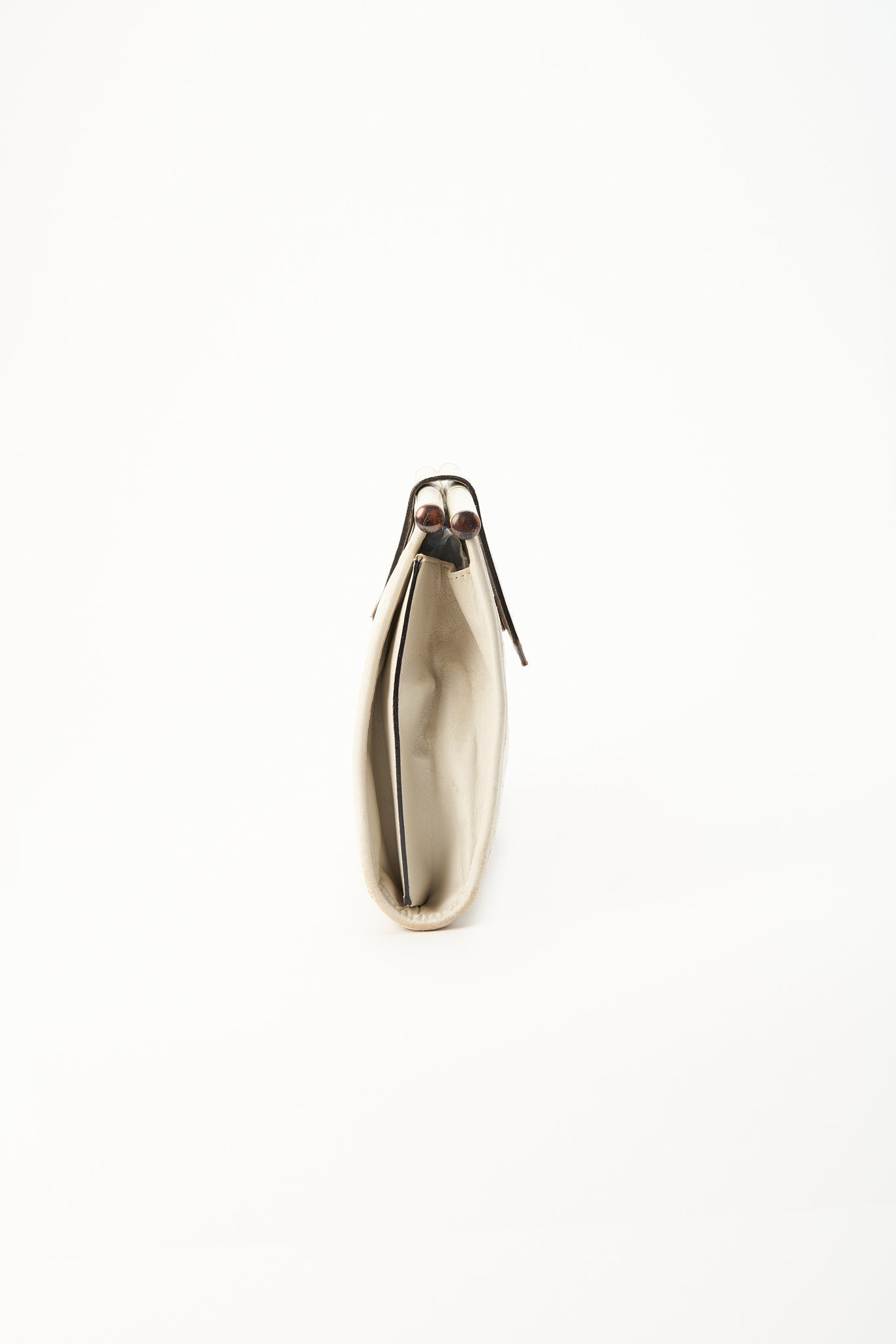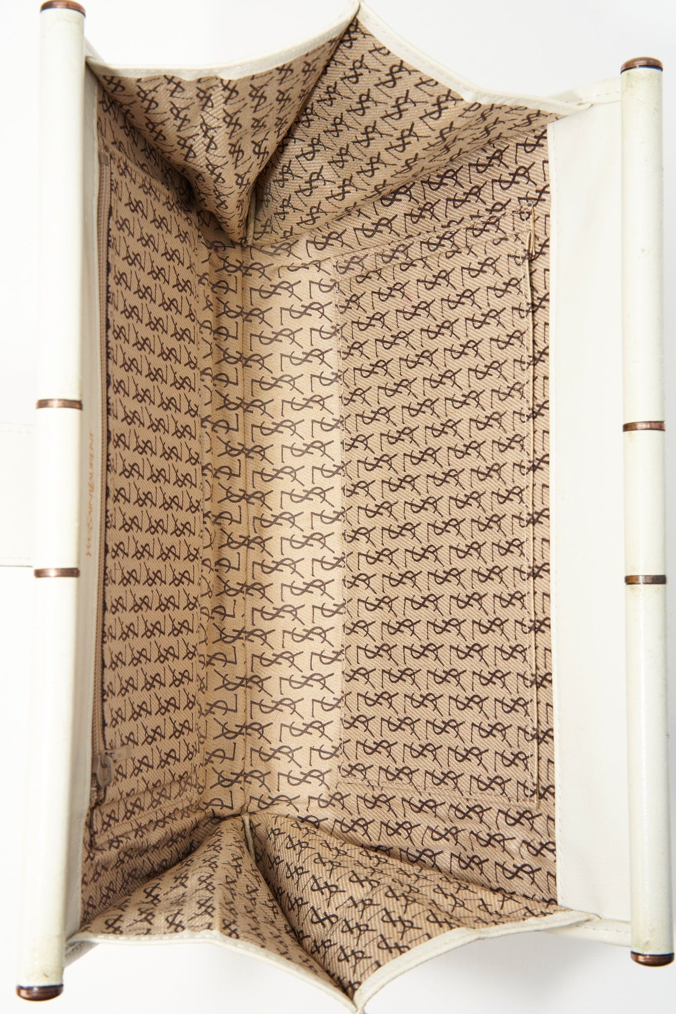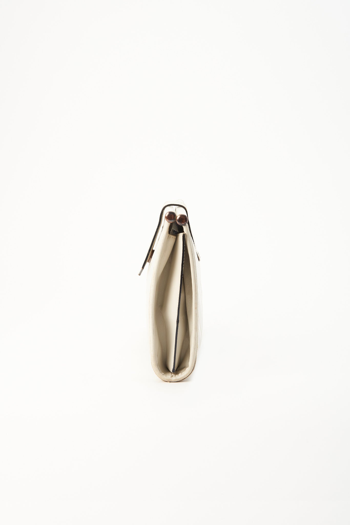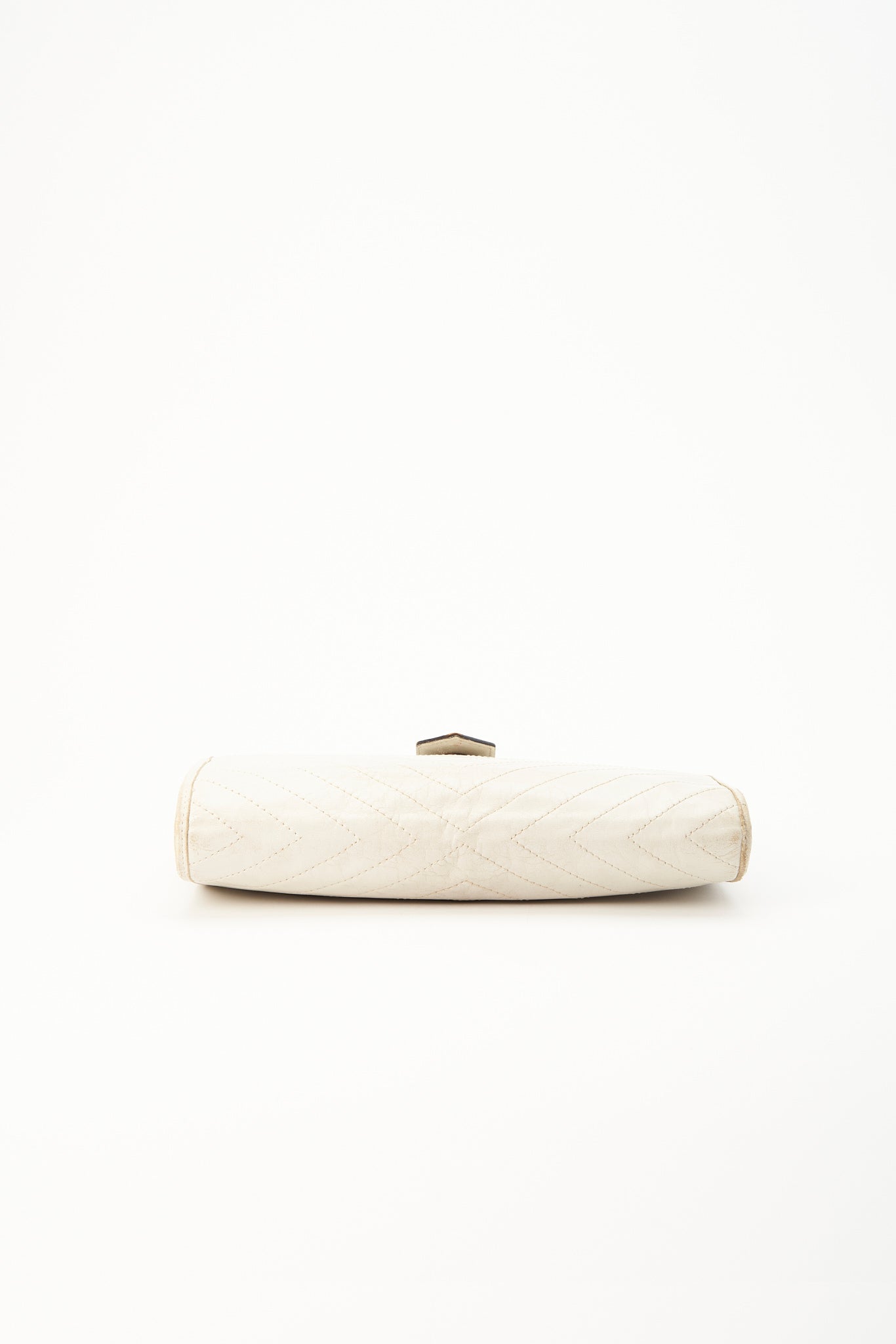 A super chic white leather vintage YSL clutch bag with hard framed closure.