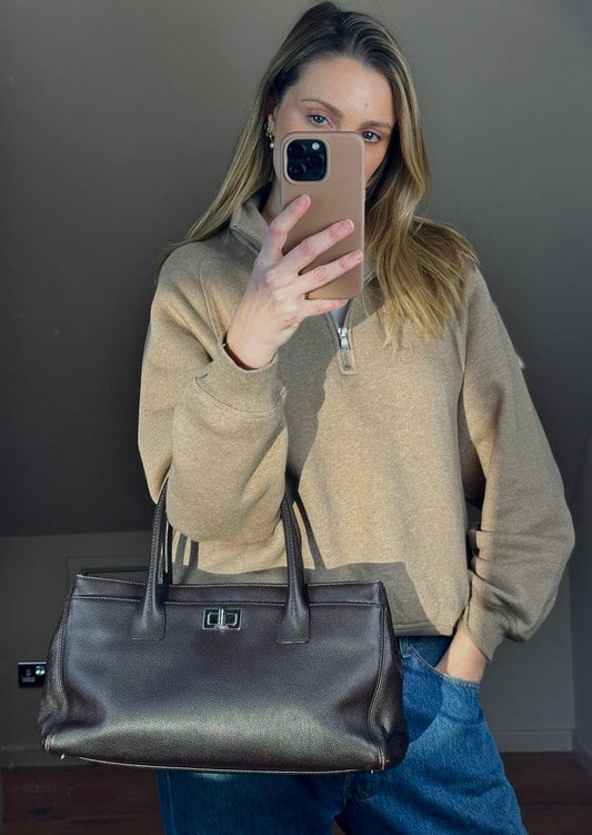Vintage Chanel Brown Leather Clutch Bag med 24k guldpläterad hårdvara