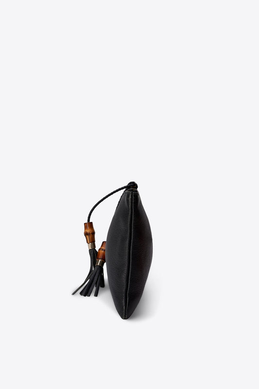 Vintage Chanel Svart läderkopplingspåse med 24k guldpläterad hårdvara