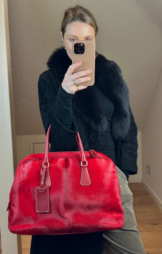 Vintage Prada Leopard tryckt kalvhårväska
