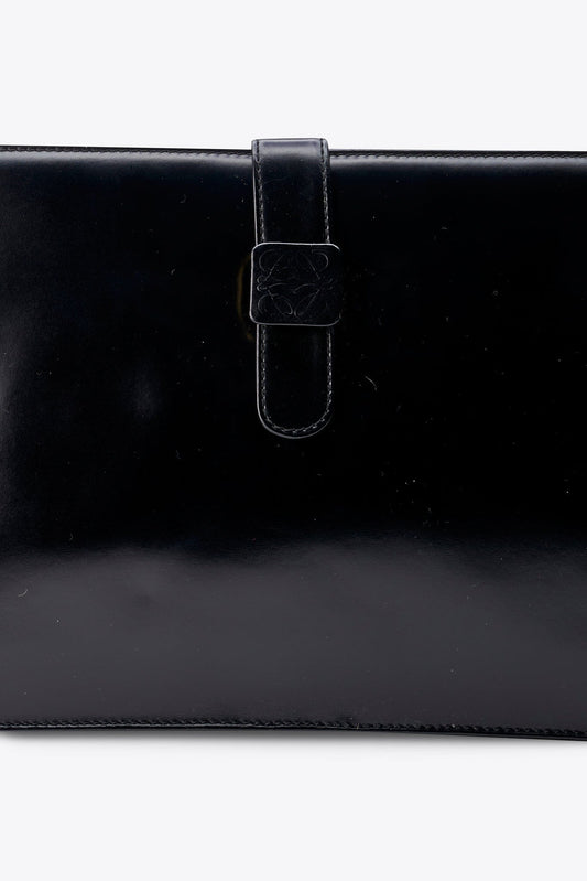 Vintage loewe svart läder och nylon shing hinkväska
