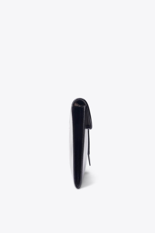 Vintage Chanel Svart läderkopplingspåse med 24k guldpläterad hårdvara